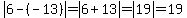 Some students find this easier to understand by looking at the two numbers 6 and -13 on a number line. 6 is 6 units to the right of 0; -13 is 13 units to the left of 0; the distance between them on the number line (i.e., the difference between them) is 6+13=19.