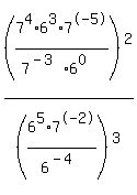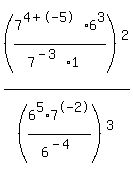 c) (7^4*6^3*7^-5/7^-3*6^0)^2 / (6^5*7^-2/6^-4)^3