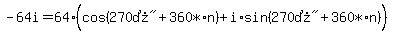 Therefore: We use DeMoivre's theorem to multiply the angle by the exponent : We can use any three consecutive integers for n to obtain the three cube roots: Using n=0 Using n=1 Using n=2 So the three cube roots of -64i are , , and Edwin
