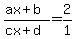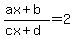 SOLUTION: ax+b/cx+d=2 solve for x I have no idea how to do this problem! Can you please help?