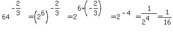 -> SOLUTION: find the value of 64 to the power of -2/3