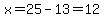 The square root of 25 results in +5, so the equation is true and the answer x = 12 works.