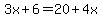 You can put this solution on YOUR website! Use the "distributive property" to simplify both sides. Subtract 3x from both sides. Now subtract 20 from both sides.