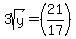 3sqrt%28y%29+=+%28221%2F17%29-+%28200%2F17%29