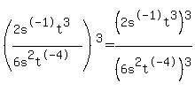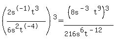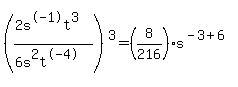 SOLUTION: Simplify. (2s^-1t^3/6s^2t^-4)^3