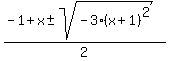 One thing to note: the expression inside the radical is equal to -3(y+1)^2. Since the square of a number is always non-negative, we will never have a real root, unless the expression inside the radical is equal to zero. Hence, we want y to equal -1. If y = -1, then x is also equal to -1. It is seen that (x,y) = (-1,-1) satisfies the original equation.