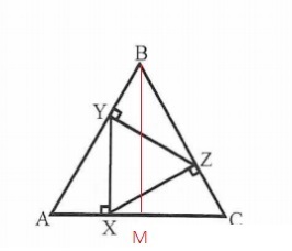 Question 1175969: Equilateral triangle XYZ is insicribed in equilateral triangle ABC as shown. What is the ratio of the area of triangle XYZ to the area of triangle ABC.