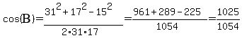 -> SOLUTION: Find the angle B in an oblique triangle in which a=31, b=15, and c=17