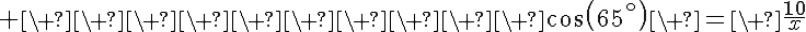 Question 611047: Since I can't put the problem on here, I'll tell you what to draw. A right triangle with the 90 degrees on the bottom left, bottom right angle is 65 degrees, bottom let is 10, hypoteneuse is x. Find x. I need to solve this using sin, cos, and tan. I'm not quite sure which one to use and how to set up the problem. Thank you!