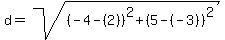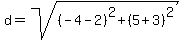 Now use the distance formula to find the distance between the two points (-4, 5) and (2, -3)