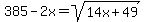 So the acceptable answer is (as you already knew) x = 168. This makes the hypotenuse