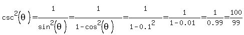 -> SOLUTION: given secant(theta)=10 find the exact value of cosecant squared theta using trig identities