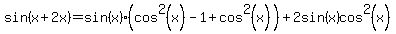2 cos^2x sin x + sin x - 2 sin^3x Answer by MathLover1(20850) (Show Source):