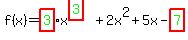 Select the correct chart for the polynomial function f(x)= 2x^2+3x^3+5x-7