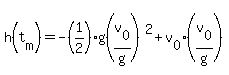 The abscissa (corresponds to the x-coordinate) of the vertex is given by: where the a and b come from the general form of a quadratic equation:, but, in this problem, the independent variable is t rather than x, and and , so you have: This is the time at which the projectile will be at its maximum height. Let's call this . Simplifying this, you get: Now substitute this value of t into the original equation to find the maximum height of the projectile: Simplifying: QED