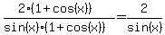 %282%2A%281%2Bcos%28x%29%29%29%2F%28sin%28x%29%2A%281%2Bcos%28x%29%29%29+=+2%2Fsin%28x%29