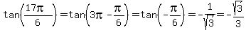 tan(17π/6)=tan(π/6)=sin/cos=1/√3=√3/3