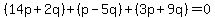 D=(2p,-p,-3p)+(-3p,-15p,9p)