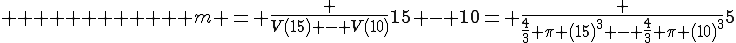 a) Find the average rate of change of volume with respect to radius as the radius changes from 10cm to 15 cm.