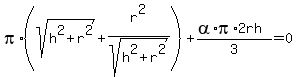 You can put this solution on YOUR website! Let h = height of right circular cone, and r = radius of same cone. Then the lateral surface area of the cone is given by . s = slant height. The volume is given by , which is constant in this problem. We proceed to use Lagrange multipliers.