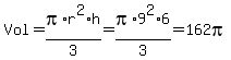You can put this solution on YOUR website! composite figure with a cylinder with a height of 8 cm and a radius of 9 cm plus a cone with a height of 6 cm and radius of 9 cm. What is the Volume? I got 2543.4 cm cubed.