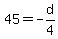 For tutors: simplify_cartoon( 45=-(1/4)*d )