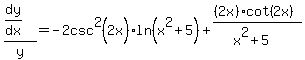 y'/y = (cot(2x))(2x) + (x^2+5)(-2csc^2(2x))