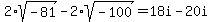 Express in simplest form, in terms of i. 2[SQRT(-81)] - 2[SQRT(-100)]