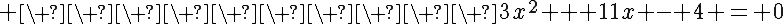 3x^2 + 11x - 4 = 0 x = ____ and _____