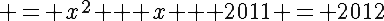 Question 486603: If x^2+x-1=0, what is x^3 + 2x^2 + 2011 closest to?