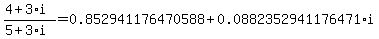 I hope you can help me with this question: 4+3i divided by 5+3i expressed in the form a+bi.