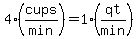 there are 4 cups in a quart, 60 min 1 hr; therefore: * 60 = 105 qt/hr