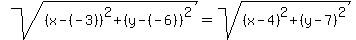 Question 1156998: Find the equation of the line that is equidistant from the points (-3, -6) and (4, 7) USING THE LOCUS DEFINITION METHOD. Write the equation in slope intercept form.
