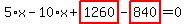 Look at 5%2Ax-10%2Ax%2Bhighlight_red%28+10+%29%2Ahighlight_red%28+126+%29-840=0.