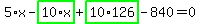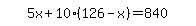 Look at 5%2Ax%2B10%2A%28highlight_red%28+126+%29-x%29=840.