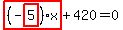 Look at highlight_red%28+%28-highlight_red%28+5+%29%29%2Ax+%29%2B420=0.