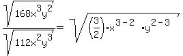 sqrt(168x^3y^2)/sqrt(112x^2y^3)