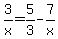 SOLUTION: Solve and check each of the following equations for x. 3/x = 5/3 – 7/x