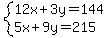 system%2812x%2B3y=144%2C5x%2B9y=215%29