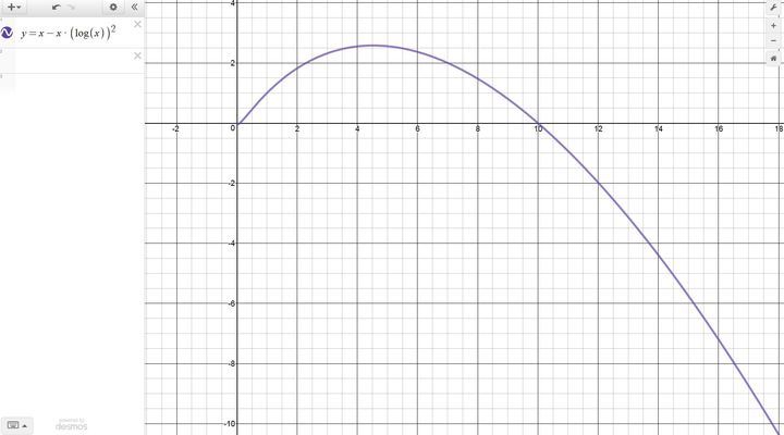 Solve f(x) = x - xlog^2x and if possible draw me a graph of the function.