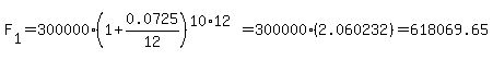 F%5B1%5D=300000%281%2B0.0725%2F12%29%5E%2810%2A12%29=300000%282.060232%29=618069.65