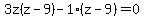 Now you factor by grouping. You factor a common factor of 3z out of the first two terms: , and you factor a common factor of -1 out of the last two terms: