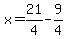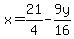 go to x+=+21%2F4-9y%2F16............eq.1a, substitute y