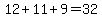 (1) Each of the fractions is close to 1/2; so the sum of the three numbers is about 2*32=64. So the three numbers are in the low 20s.