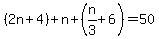 -> SOLUTION: Joshua is 4 years older than twice jonah's age. one-third of Jonah's age plus 6 gives Jamie's age. the sum of their age is 50. How old is Jamie?