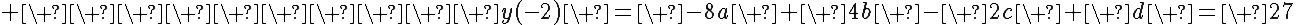 -> SOLUTION: The function y = ax^3 + bx^2 + cx + d has a maximum turning point at (−2, 27) and a minimum turning point at (1, 0).