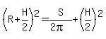 2(pi)R^2 + 2(pi)RH - S = 0