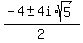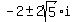 In both cases,  x + y = -2 - 2 = -4;  xy = %28-2%29%5E2+-+2%5E2%2A%28sqrt%285%29%29%5E2%2Ai%5E2 = 4 - 4*5*(-1) = 4 + 20 = 24.