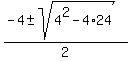 x%5B1%2C2%5D = %28-4+%2B-+sqrt%284%5E2+-+4%2A24%29%29%2F2 = %28-4+%2B-+sqrt%2816-96%29%29%2F2 = %28-4+%2B-+sqrt%28-80%29%29%2F2 = %28-4+%2B-+4i%2Asqrt%285%29%29%2F2 = -2+%2B-+2sqrt%285%29%2Ai.