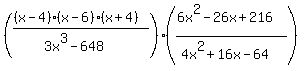 -> SOLUTION: x^3+96-6x^2-16x/3x^3-648 divided by 4x^2+16x-64/6x^2-26x+216